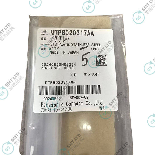 This stainless steel jig plate is designed for Panasonic SMT feeder calibration systems. The MTPB020317AA model ensures precise component placement and reliable performance in surface mount technology applications.